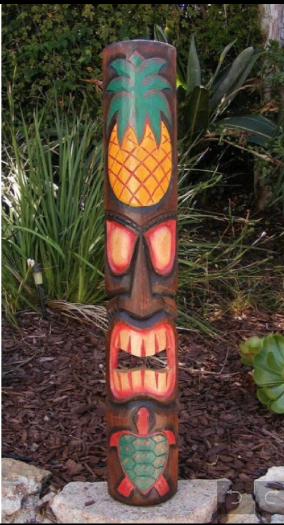 These Hawaiian style wood carved mask are a great way to spice up any patio, room, or tiki bar! These masks are beautifully hand carved and stained. They can be used indoors or outdoors. The backs of the masks are hallowed out to fit around poles but can be placed flat against the wall. This mask will make a great gift or put this piece up in your own home, patio, or yard.