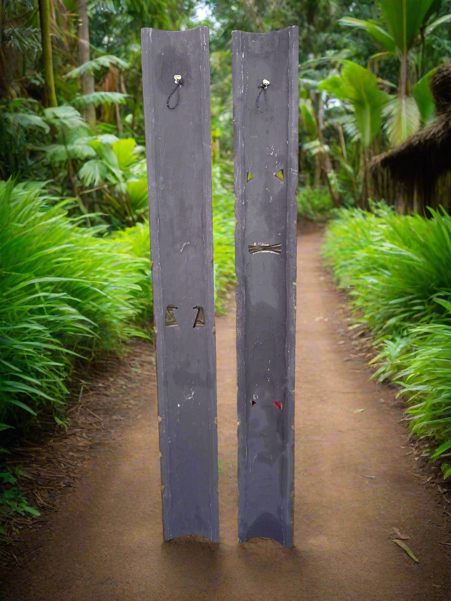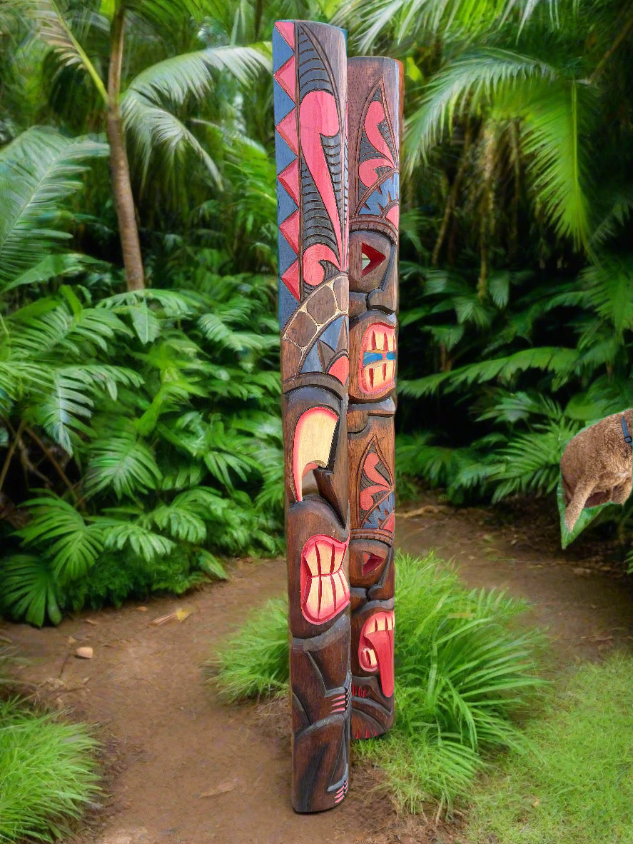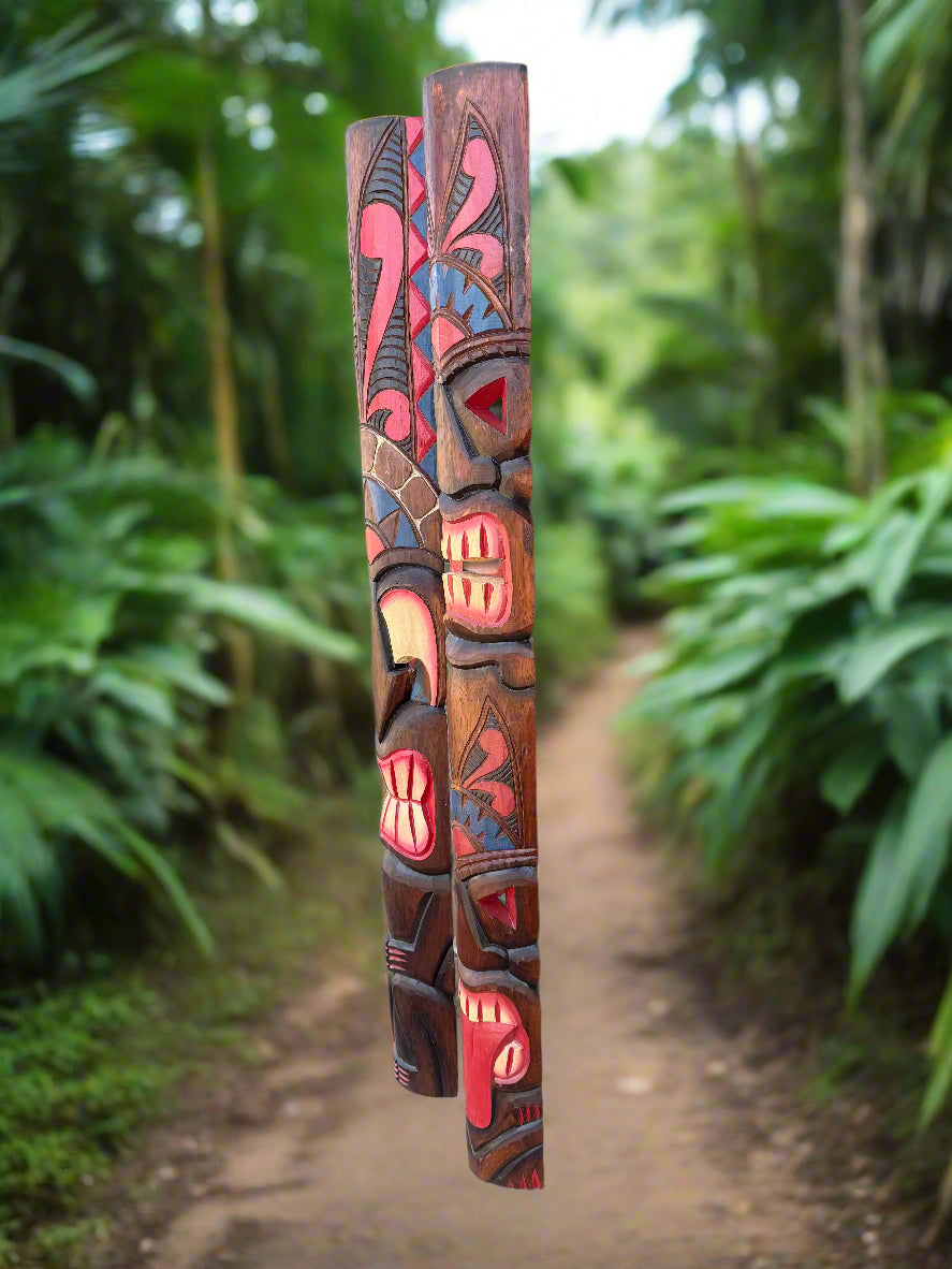 5 Foot Set of Hand Carved Wooden Tiki Masks Tropical Bar Patio Decor 60"x 7"in