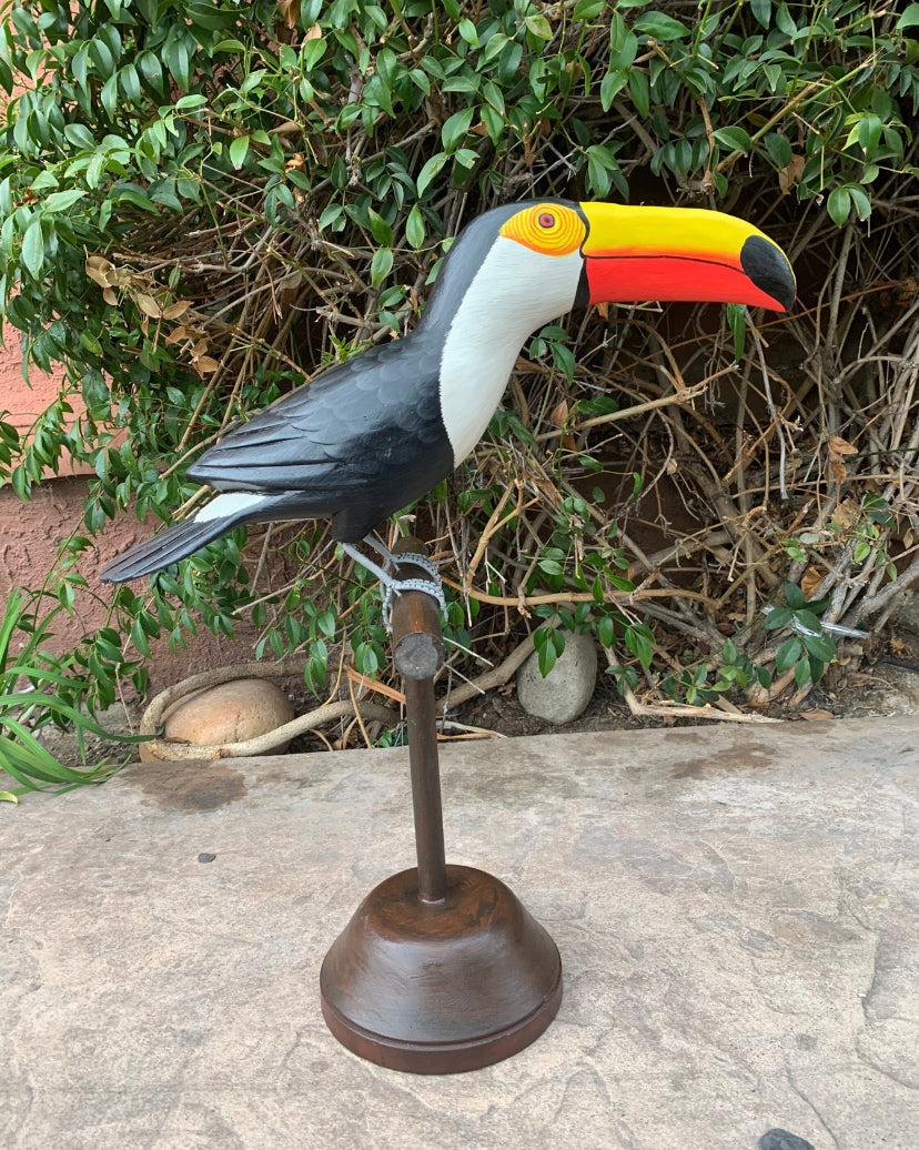 This beautiful hand carved and painted tropical toucan would make a great addition to any room in your house! It also would make a great addition to your balcony, patio, yard, or tiki bar.