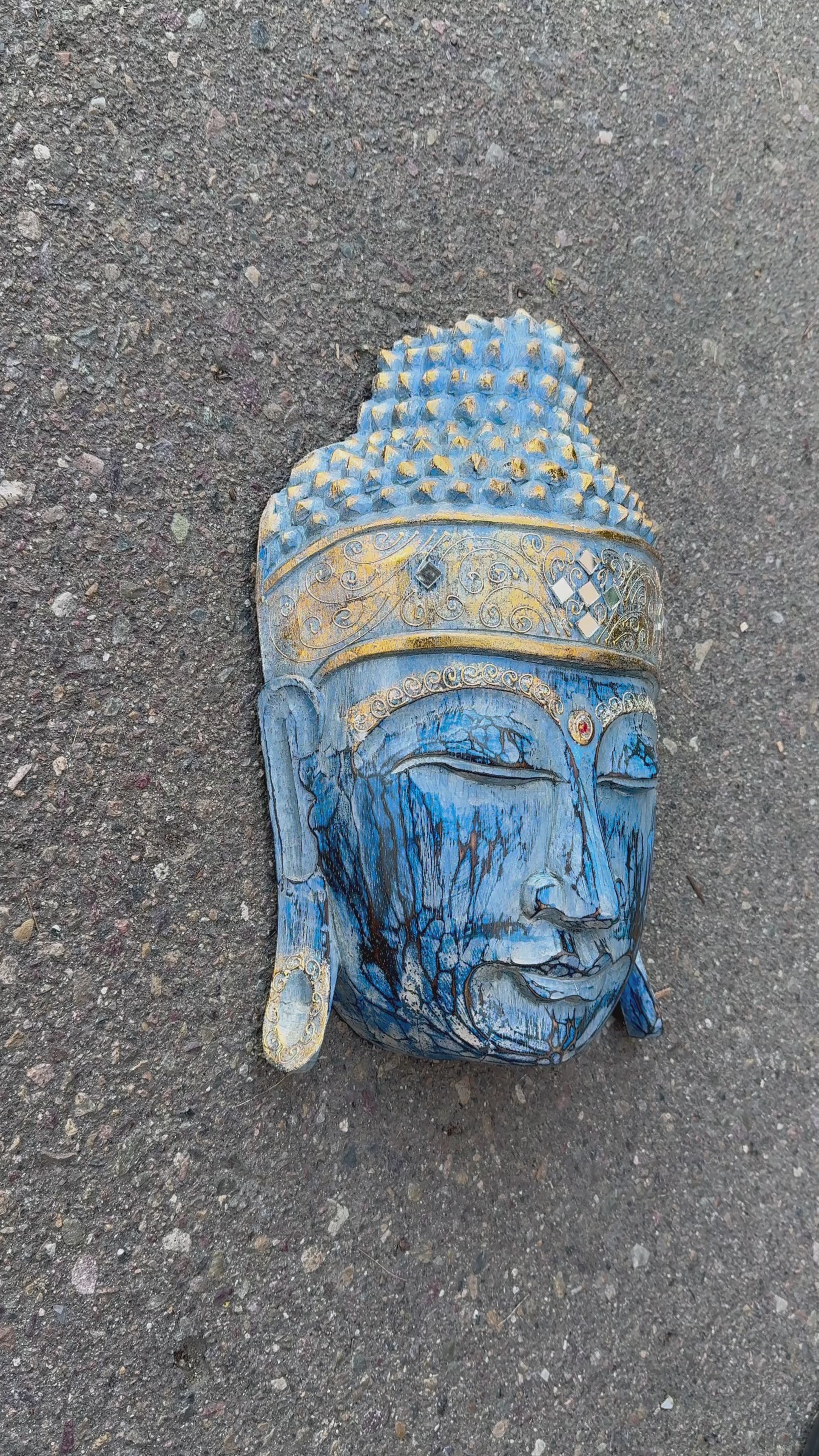 Enhance your space with this exquisite 20" inch wooden Buddha wall mask. Crafted by skilled artisans, this handmade piece is a perfect addition to your wall decor. The intricate carvings and attention to detail make this statue a unique and valuable item for any collector or enthusiast of Buddhism. It is flat on the back with a hanger to hang on the wall. It measures approximately 20 inches tall and 12 inches wide.wall