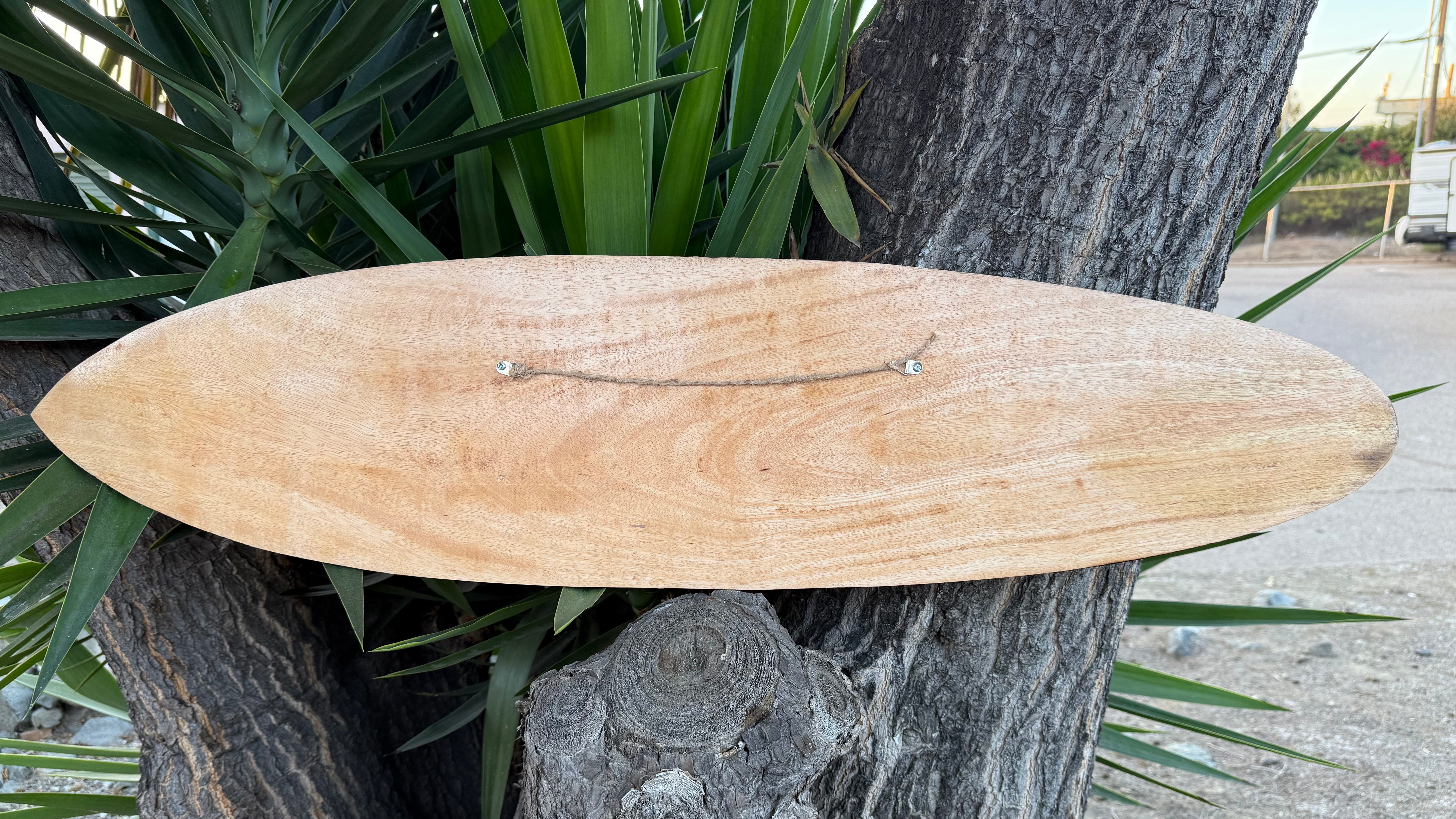 This colorful hand carved and airbrushed surfboard sign would look great in your home, patio, or tiki bar! Beautifully airbrushed with a parrot drinking a cocktail. You can see the beautiful wood grains of the Mango Wood under the Airbrushed paint . This “It’s 5’ o clock somewhere" sign is sure to grab attention. Let the festivities begin once this sign goes up. 39"x6”