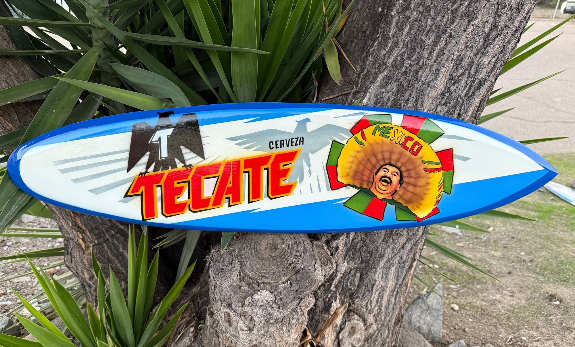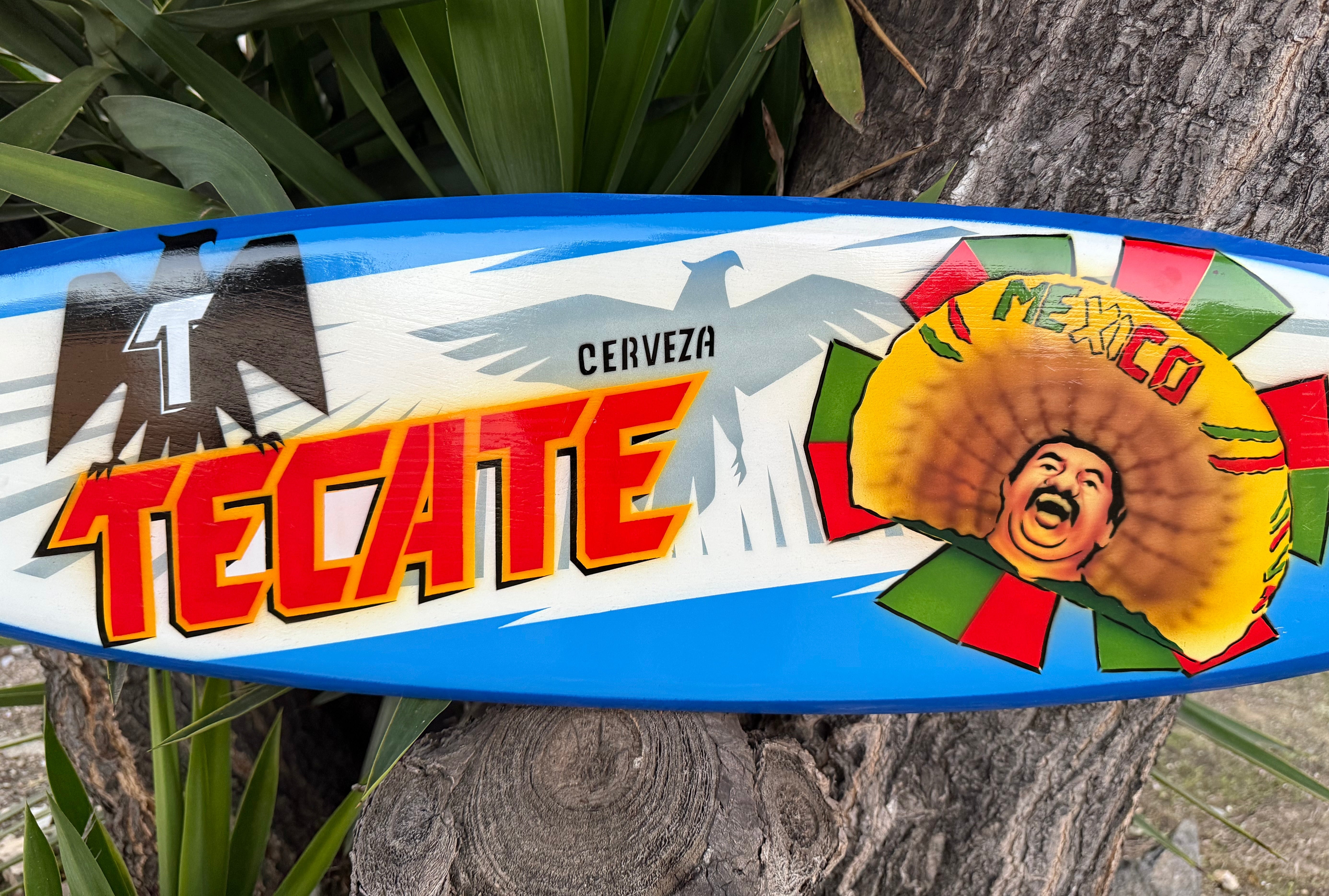 This beautiful hand crafted Tacate Surfboard wall plaque would make a great addition to your home, patio, or tiki bar. It is hand carved from top-of-the-line mango wood, and has a flat back with a hanger. Bring a taste of the crisp Mexican Lager home to you! This surfboard would also make an awesome gift! 39x 10 inches