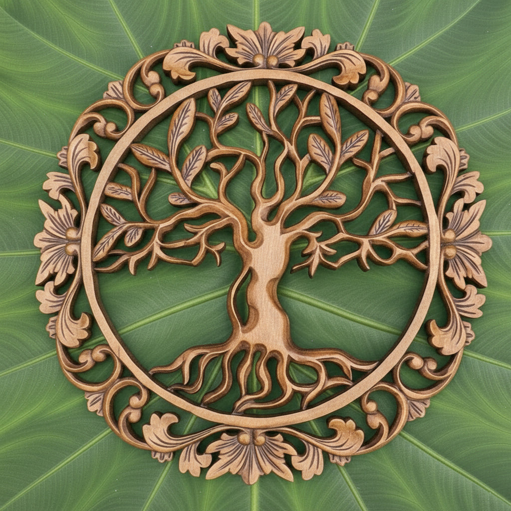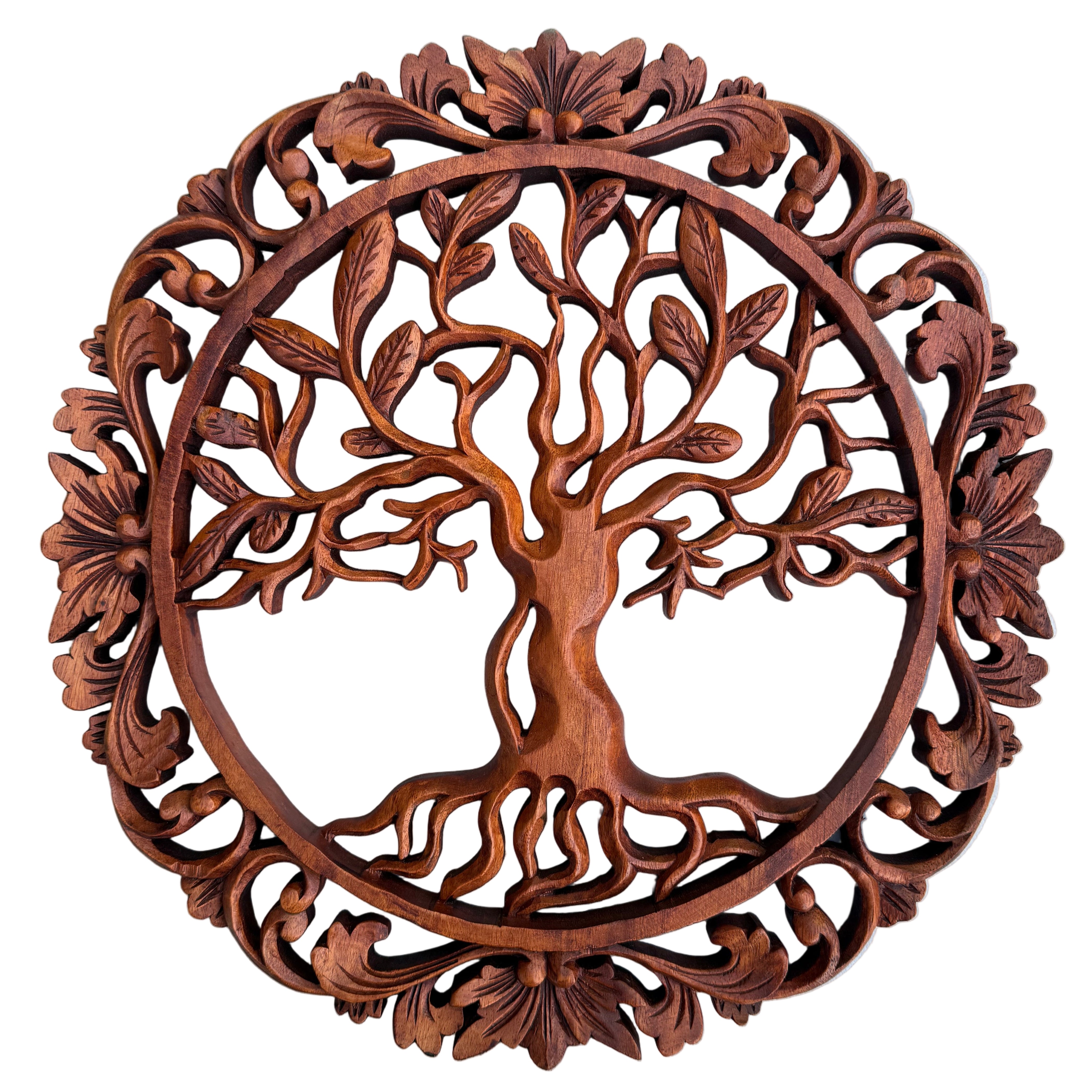 This beautiful hand-crafted Tree-of-Life statue is carved from Mohogany wood using the relief technique. This stunning piece of art is an sure to spice any room in your home. Perfect gift for any wine lover, or keep it for yourself! 16"x 16" inch.
